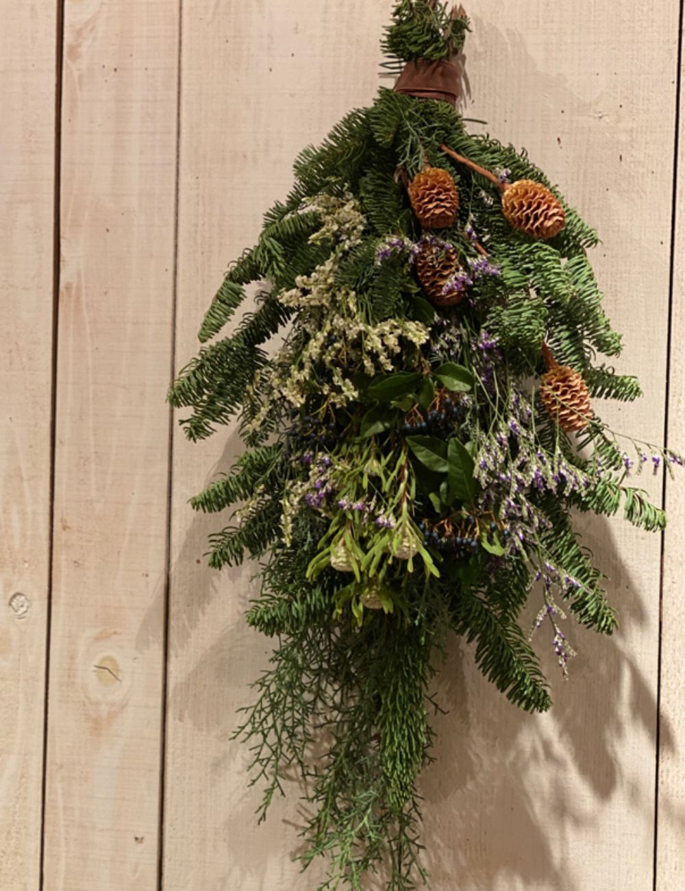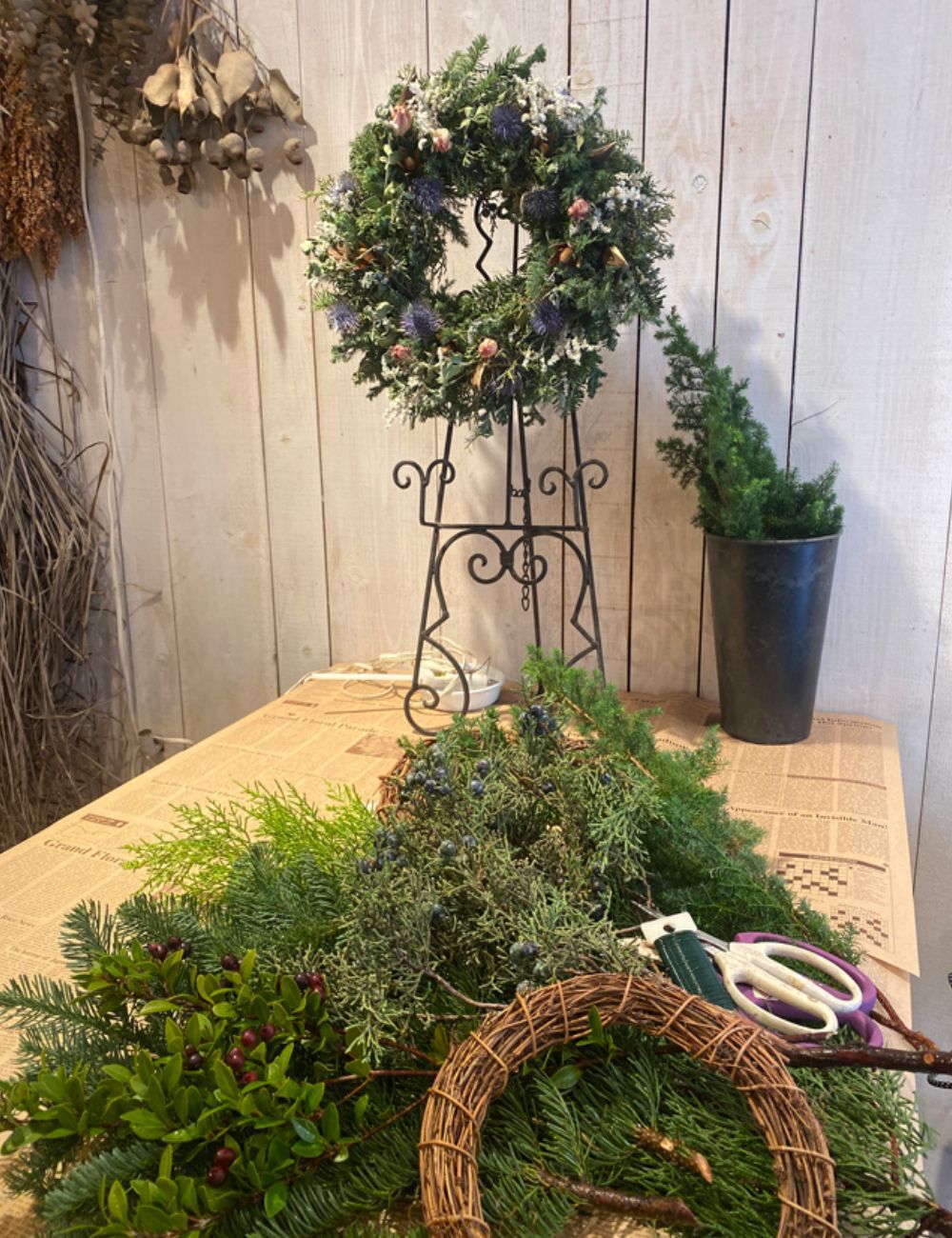 一年の締め括りに森の香りのリースを手仕事で仕上げます。